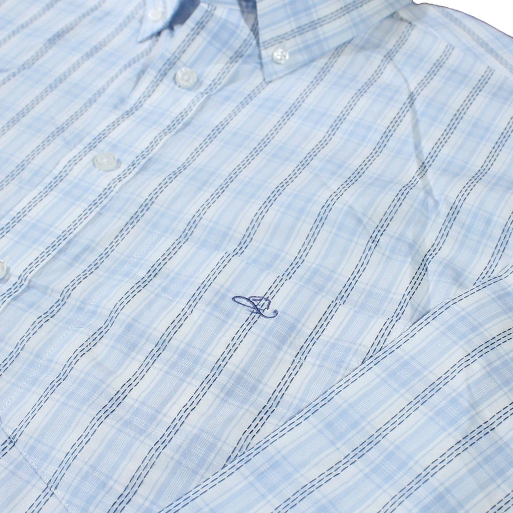 - Camisa a cuadros blancos con azul.